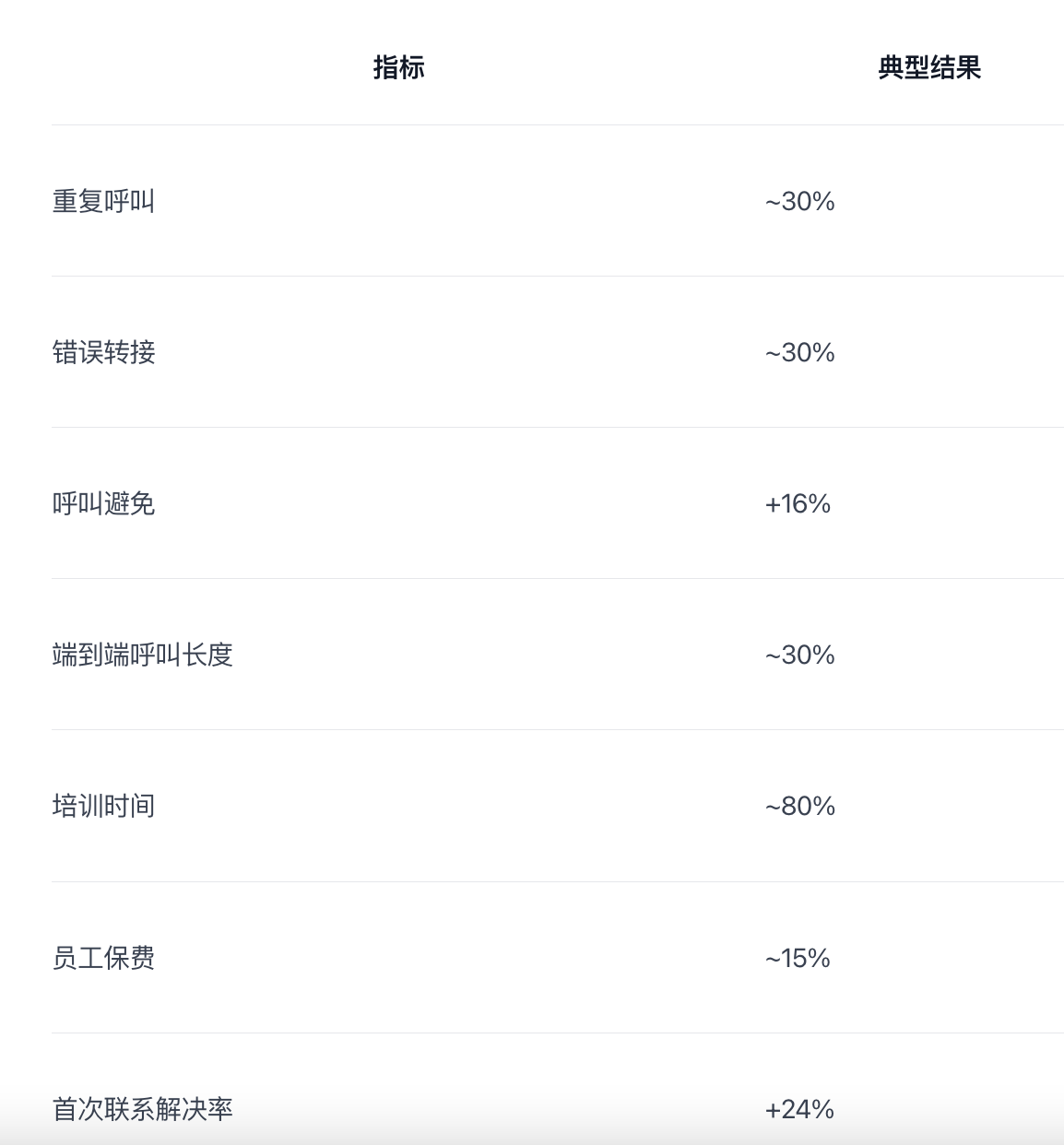 1. 在典型的呼叫中心实施中,它可以提高效率。 列出了适用的指标以及典型结果(来自 Baklib 客户案例研究)。 大多数呼叫中心都可以轻松测量所有这些参数。