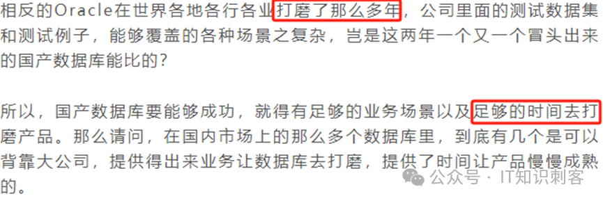 看了一篇《为什么我对国产数据库,没有信心!!!》, 文章中的核心观点,“一个成熟的数据库产品,需要打磨的时间,需要实践过的业务场景,那是巨大的”,取得了很多人的共鸣。