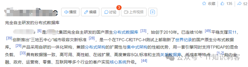 时间,唯有时间,可以让数据库像男人一样,越陈越香。/383196+203其实这个观点国产数据库的CTO、领导们,也都是了解的。数据库,特别是OLTP型数据库,是一块因一纸政令,而突然出现的市场。再叠加数据库替换先天的复杂性、危险性,这种情况下,突然冒出几百数据库跑步进场、抢占先手,把“坑”占住,也不足为奇。这其中不乏易*捷这样,只占坑、不拉屎,或借壳拉屎的数据库。比如,遥遥领先家的数据库,百度百科上都能搜出来: