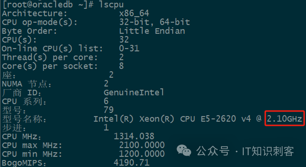 这是一台主频为2.1GHz的至强CPU: Intel(R) Xeon(R) CPU E5-2620 v4 @ 2.10GHz。