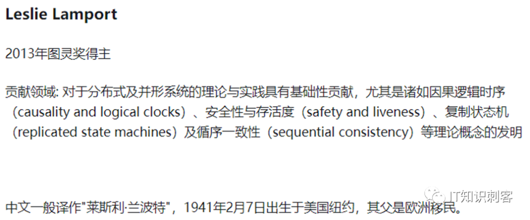 Leslie Lamport老爷子呢,贡献领域:分布式及并形系统的理论与实践: