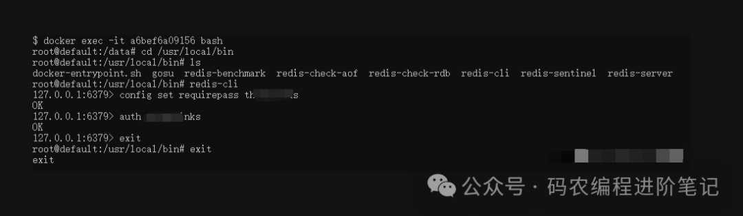 第五步:设置redis密码。利用exec进入容器