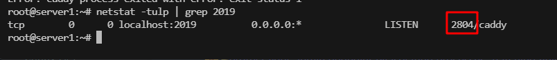 已经启动了caddy服务, 所以将caddy的 API 端口给占用了,所以我们只需要netstat -tulp | grep 2019