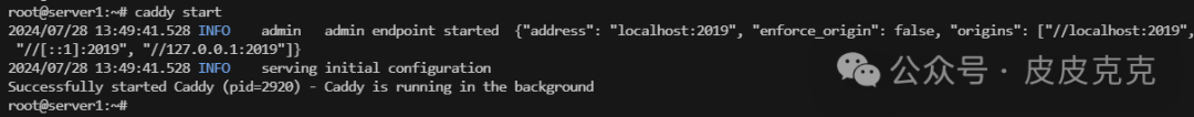 如果你打算用 Caddy 自带的服务管理框架的时候,你运行caddy start