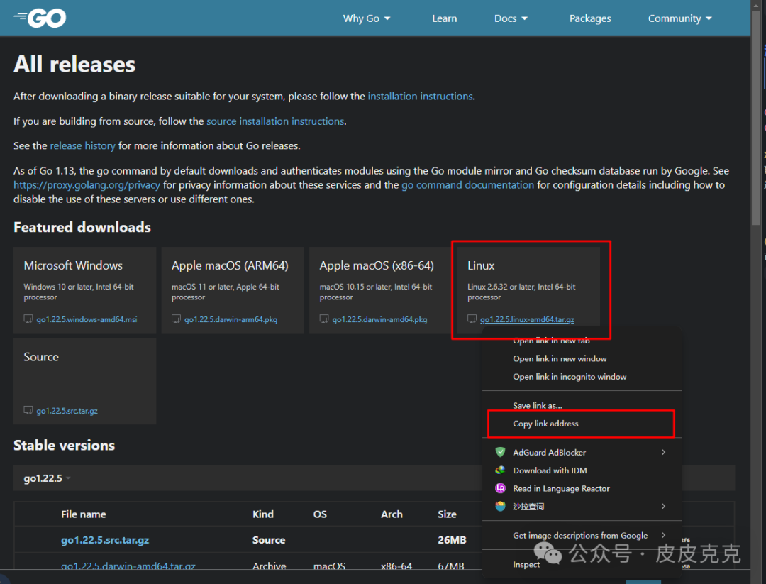 wget https://go.dev/dl/go1.22.5.linux-amd64.tar.gz #后面为你刚刚在浏览器中复制的地址