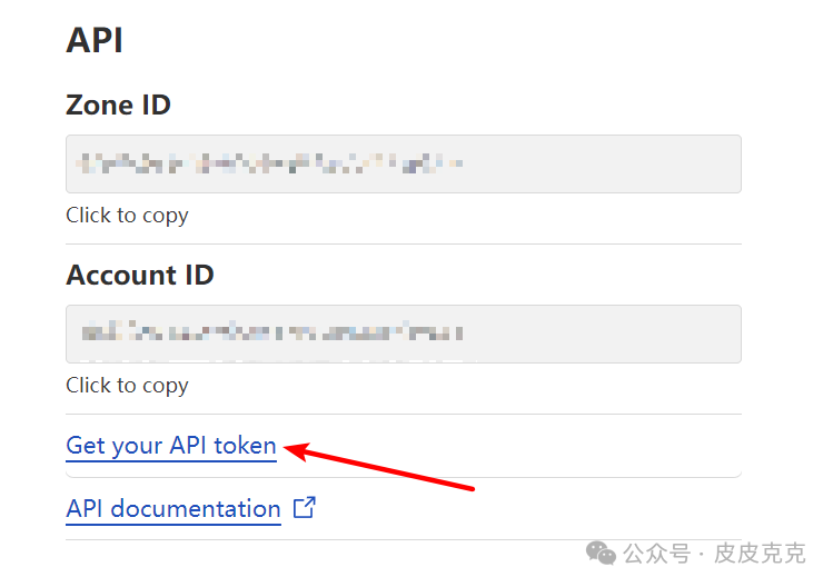 向下滑之后右边你会看到标题为 "API" 的部分, 点击 "Get your API token"