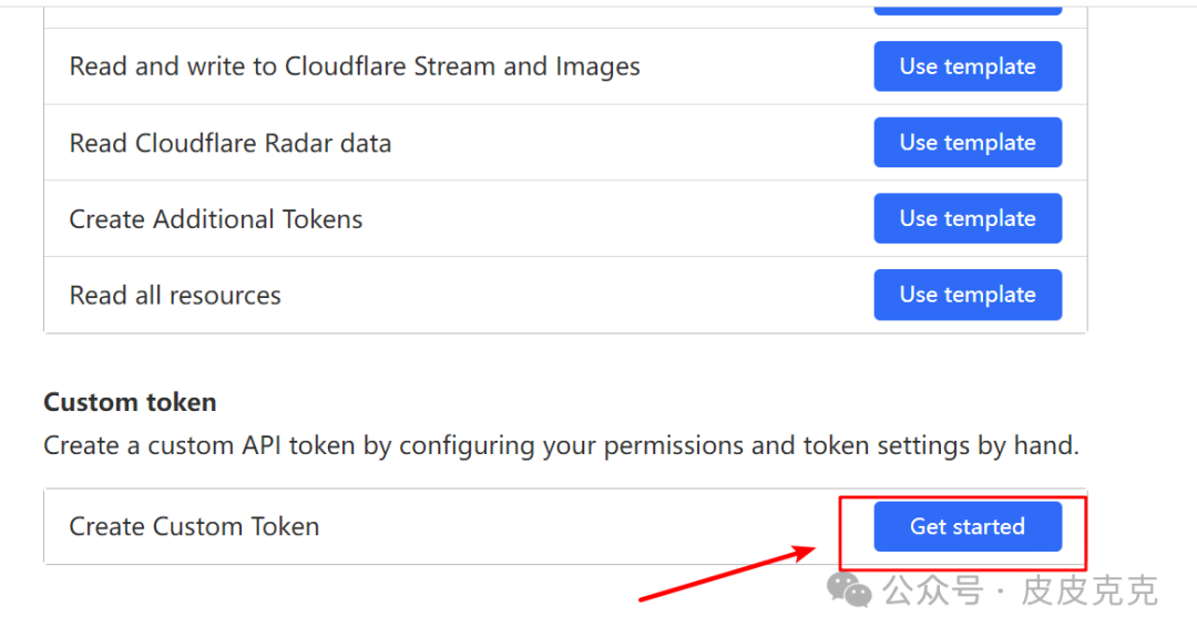 4.在 “User API Tokens” 页面,滑动到底部, 点击 "Create Custom Token"