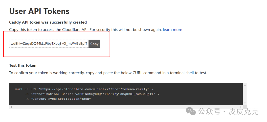 6.然后点击 “Continue to summary”, 现在就能看到您的API token了,然后将它复制下来