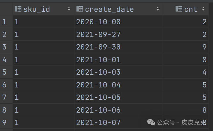select sku_id,create_date,sum(sku_num) as cnt