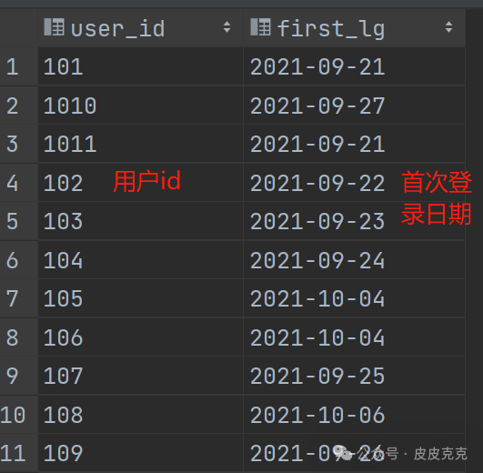 若一个用户在某天登录了,且在这一天之前没有登录过,则认为该用户为这一天的新增用户。