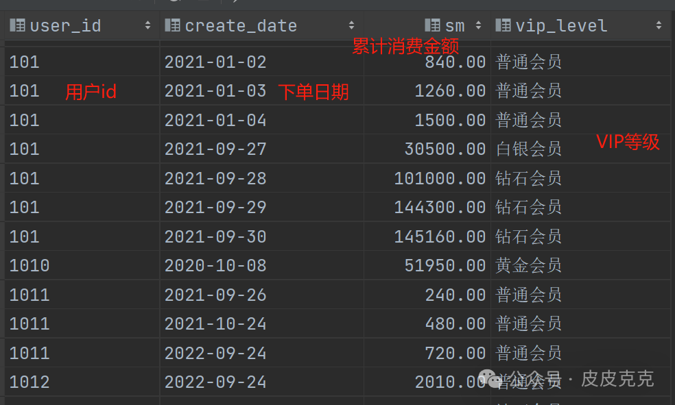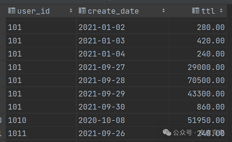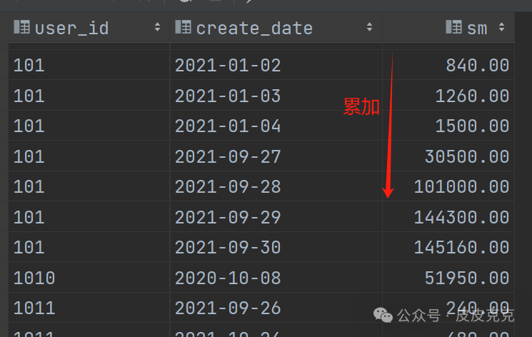 (2)按照用户user_id、下单日期create_date开窗,计算截止当天累计消费金额