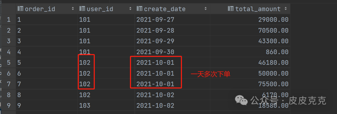 因为可能存在一个用户,一天中下单多次: