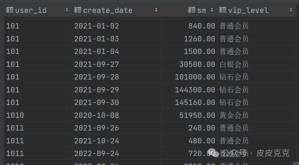 when sm >= 80000 then '白金会员'