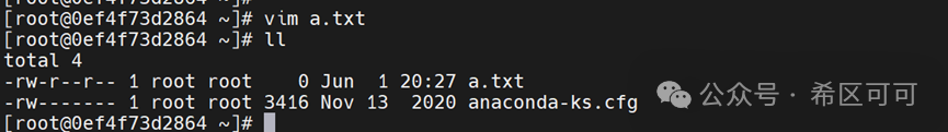 然后在该容器实例里面,就可以使用 vim 工具了: