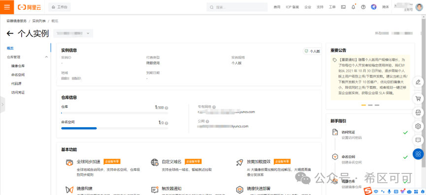 https://cr.console.aliyun.com/cn-hangzhou/instance/dashboard