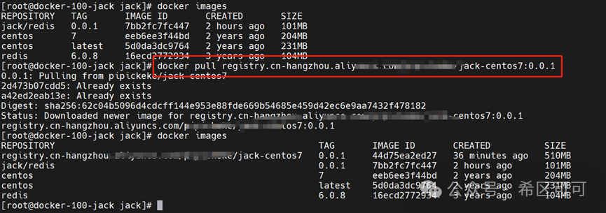 拉取呢?从阿里云仓库拉取镜像到本地。