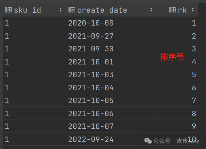 (2)按照sku_id、create_date,开窗排序