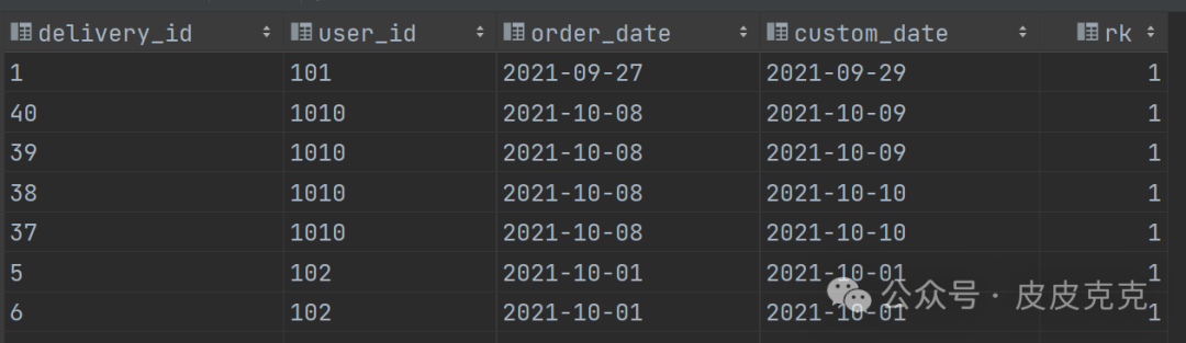 (2)选择每个用户最早的下单即可,筛选rk=1