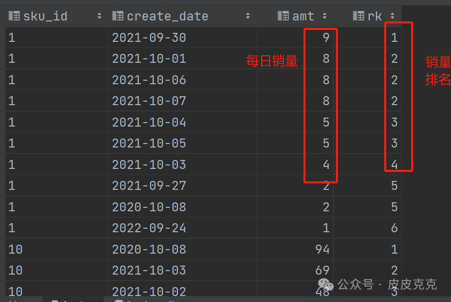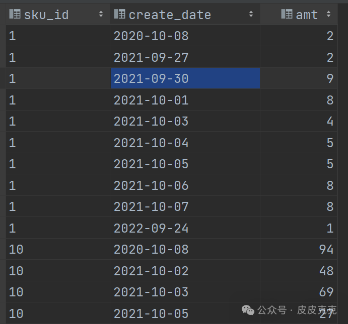 解题的思路就是需要先按照商品(sku_id)和销售日(creat_date)