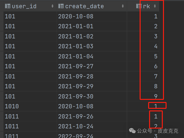 因为第(1)步骤里面已经进行分组,这步骤的排序可以任意使用排序函数,rank()、dense_rank()、row_number(),