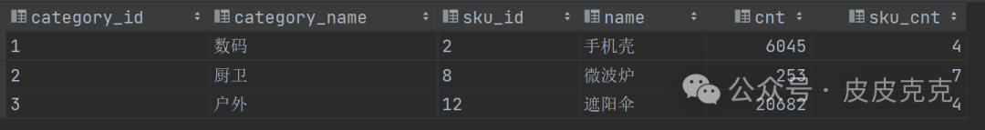 select category_id,category_name,sku_id,name,cnt,sku_cnt