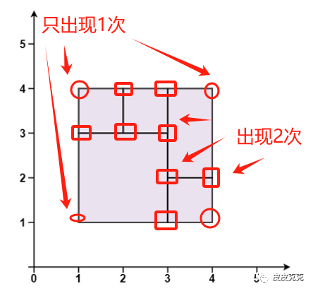 (2)小矩形的四个顶点,除了组成大矩形的四个顶点外,其他顶点都出现2次: