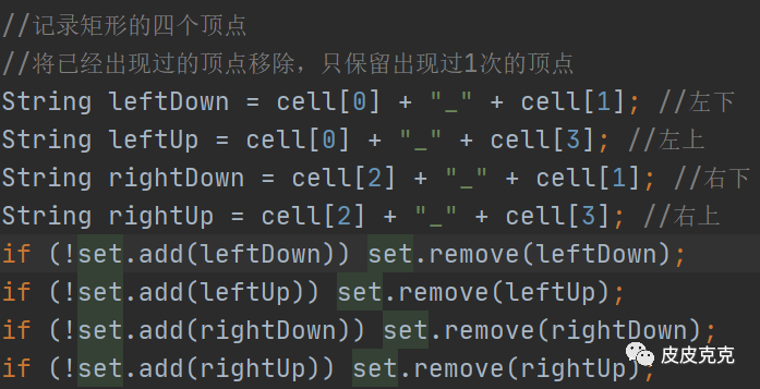 完美矩形的四个顶点,可以通过 set 去重获得: