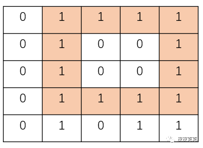 可以找到一个点,向右有连续的4个1: