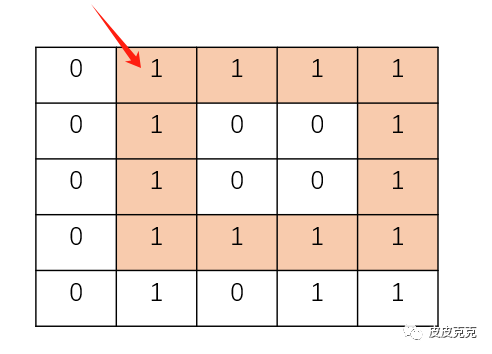然后,指针下移4位,发现这个点,向右也有连续的4个1: