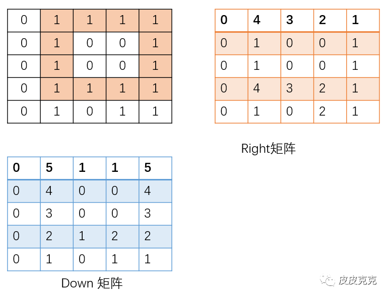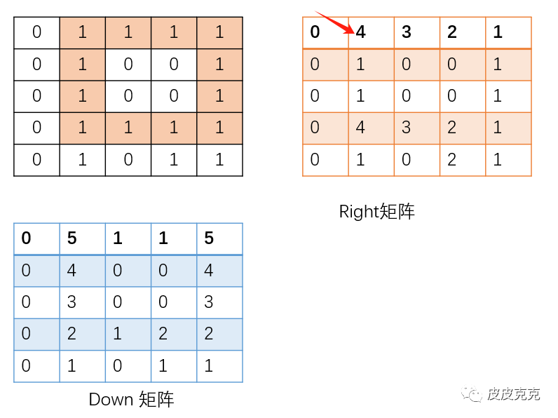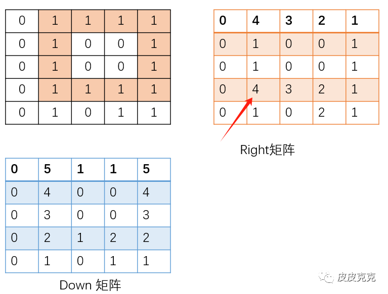 利用辅助矩阵 right[][],down[][] 记录