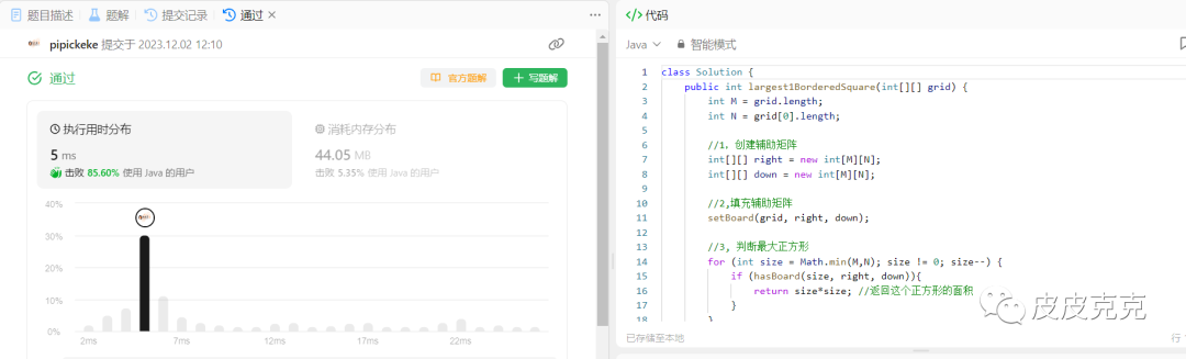 比如,原矩阵grid 边长是5,我们先判断是否有边长为5的正方形。