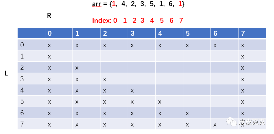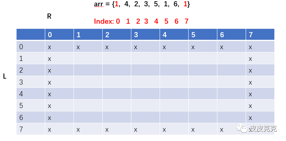 (2)因为arr 左右两端是我们新加的辅助元素,不会在尝试范围内,所以填上x