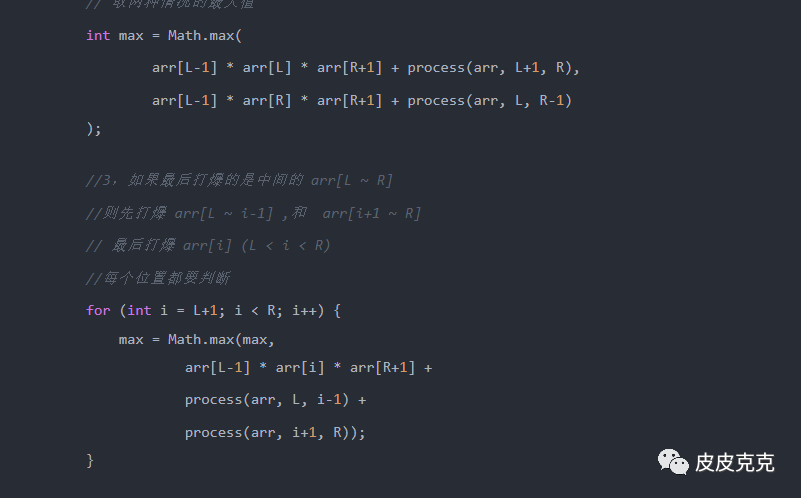 int finalR = tmp[L-1] * tmp[R] * tmp[R+1] + dp[L][R-1];