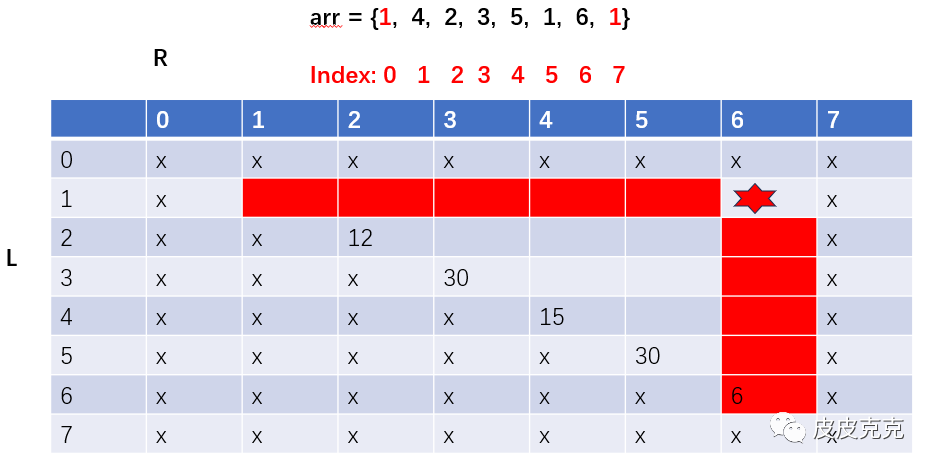 依此类推,会发现dp[1][6] 只依赖同行和同列: