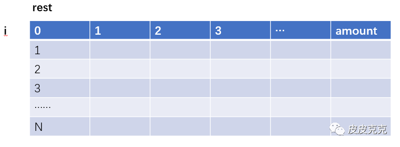 rest 表示当前需要凑齐的金额数,初始肯定是给定的 amount。