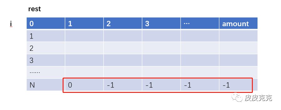 //2,初始化 dp[N][1..amount] 为 -1