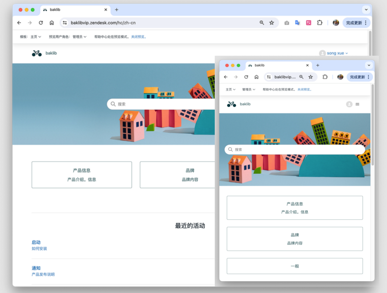 Zendesk 沿用了经典的帮助中心样式;Baklib的自适应满足更多终端的适配体验。