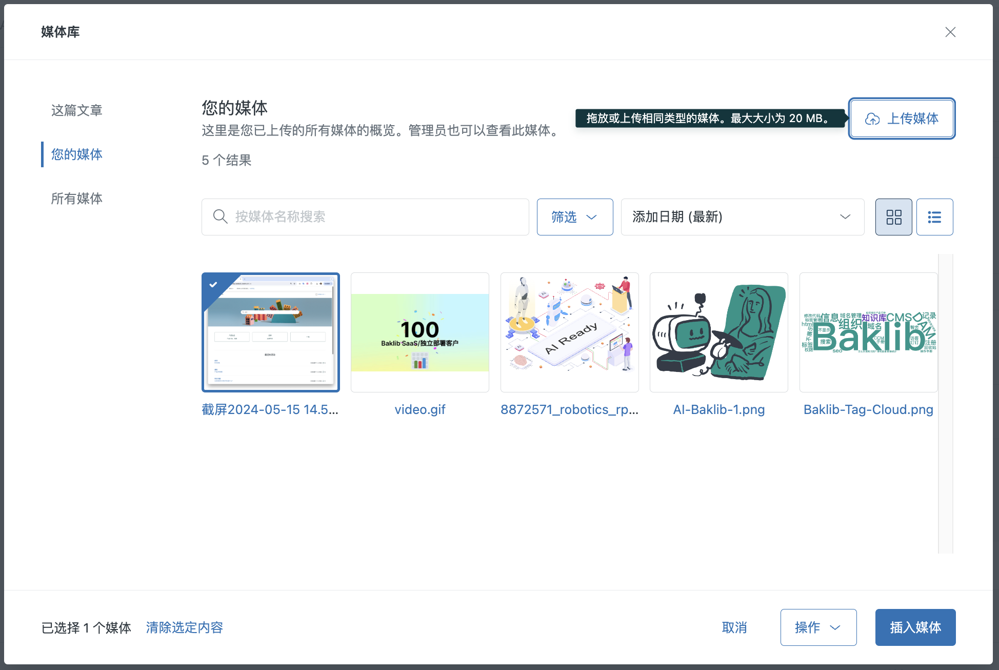 媒体资源:Zendesk 1)仅支持图片和视频,2)在下方可附加一个可下载的附件;Baklib则独有的新增了链接、知识片段、音频、文稿(PDF/PPT/Word/Excel)以及其他格式附件的插入功能。