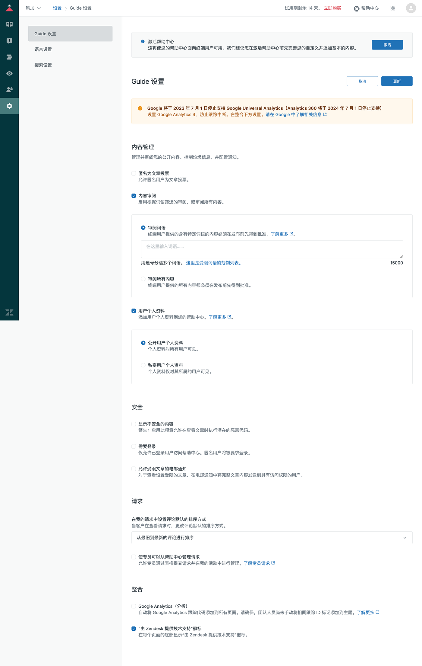 但他们认为 Zendesk Guide 确实落后于时代。虽然 Zendesk 支持、聊天、探索等多年来都已更新和优化,但Guide指南却陈旧过时。我确实知道这不是最容易更新和重新设计的,并且优化 SEO 基本上是不可能的(没有站点地图,没有元标记等)。但他们添加了内容块等新功能,并重新设计了指南管理端。
