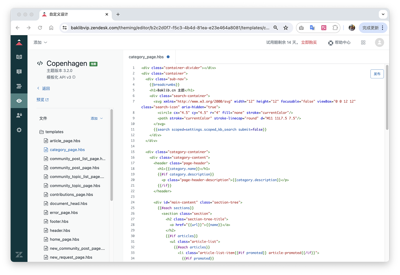 能提供前端模板的低代码开发,市面上类似的平台并不多,我们所知道的有Shopify,Hubspot,Zendesk,Baklib,Wix等,其中除了 Baklib,其他几家都是头部SaaS软件上市公司,低代码模板在线编辑是Baklib和Zendesk共同的优势所在。