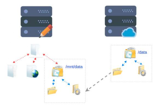 在上图中,网络文件系统将远程的目录树映射到本机,成为本机目录树中的一棵子树。并且,两颗树中的元素是一一对应的,也就是本地的一个文件对应着存储设备上一个文件;一个目录对应着存储设备上的一个目录。对于普通用户来说,访问该子树中的内容与访问本地其他子目录内容没有任何差异。也就是用户不会感知到该子树的内容是在远端,也没必要感知这种存在。