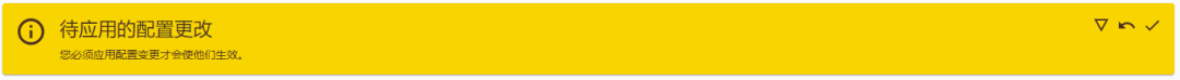 需要注意的是,完成向导后配置并没有生效,在操作的过程中会出现下图所示的警告信息,我们需要单击右侧的对号配置才能生效。后面所有配置都是这样的,这一点一定要注意。