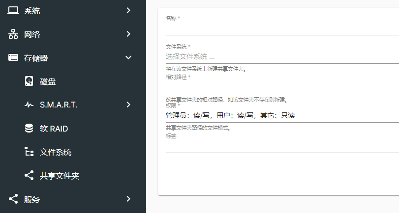 了解了上述功能后,我们接下来介绍一下如何进行配置。主要是针对上述两个方面,一个是配置存储资源,另外一个是配置服务相关的内容,使得其他计算机(手机)可以访问存储资源。