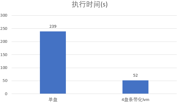 使用多盘条带化LVM的存储池,可以显著提高磁盘吞吐,提升程度接近线性,相应地,在该场景下,SQL的执行性能提升4倍,提升程度也接近线性。