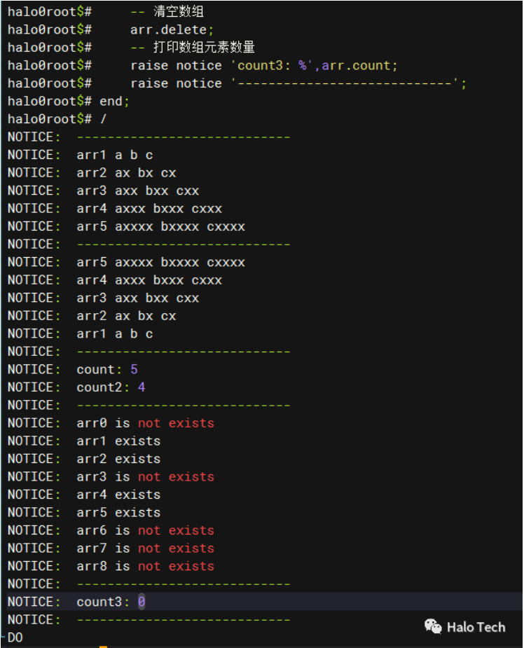 DBMS_OUTPUT.PUT_LINE('COUNT: ' || arr.COUNT);