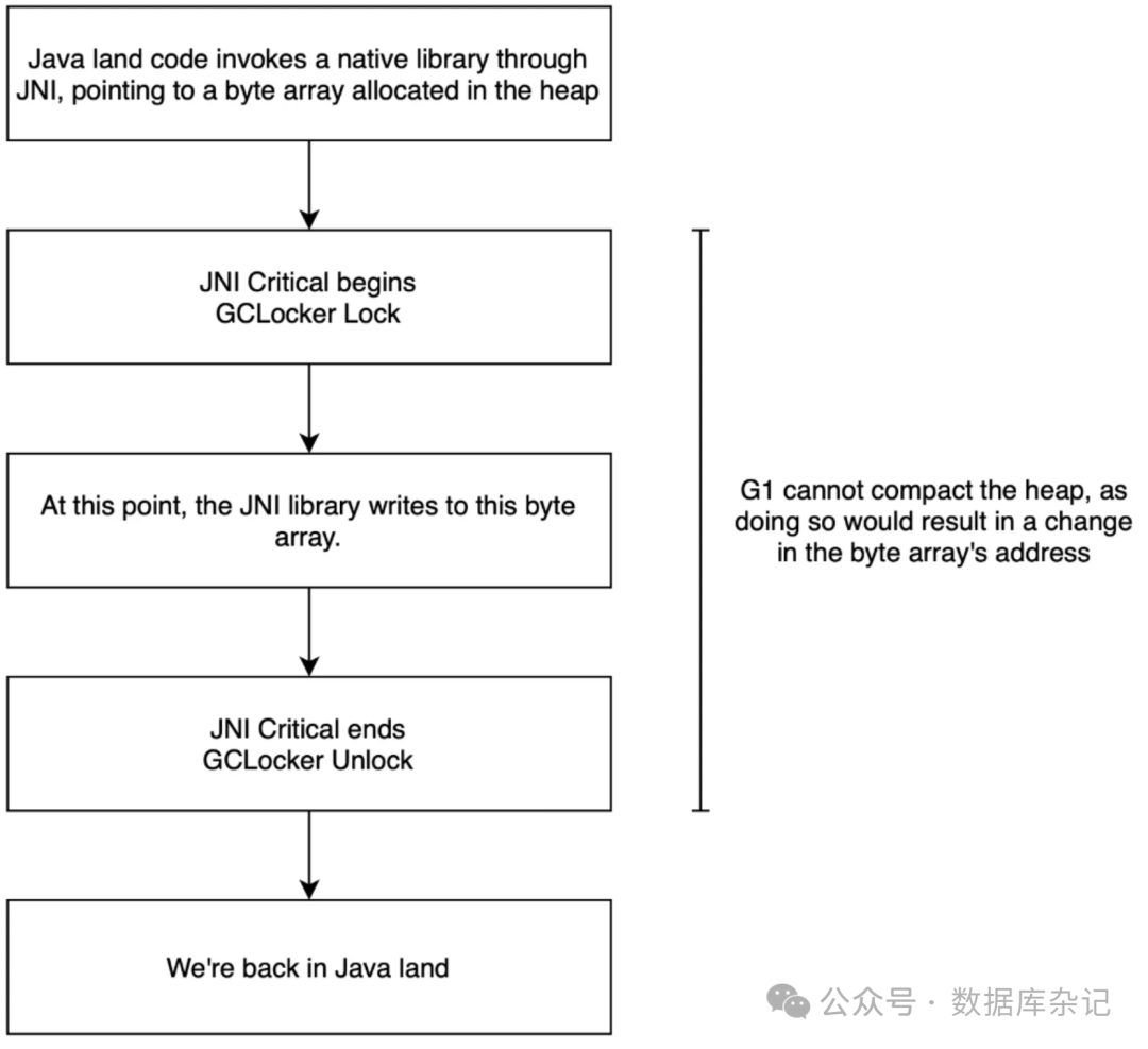 简单地说,GCLocker是一种工具,用于防止JVM在JNI读/写地址时移动对象,因为移动对象会导致地址发生变化,而JNI对此并不知情。