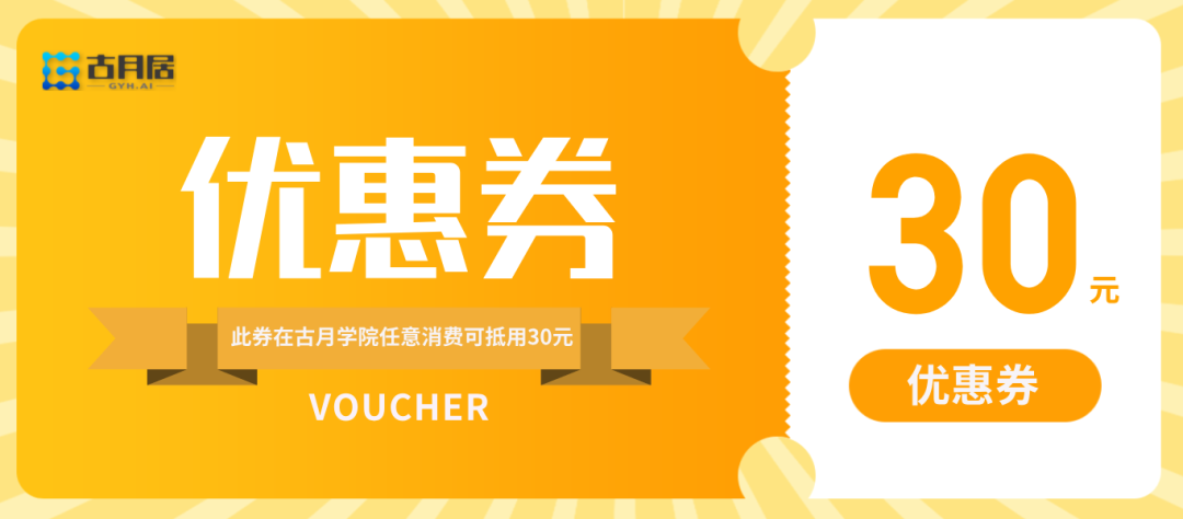 报名成功并参与入营仪式,赢取古月居提供的30元代金券