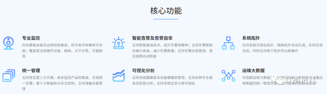 全面覆盖 自动发现和监控网络中的所有设备和关键业务应用,确保无遗漏。 减少工作量 显著减少了手动配置监控项的工作量,提升了运维效率。 实时监控 实时获取设备和服务的状态和性能数据,快速响应和处理异常情况。 优化资源 通过自动化监控和告警,优化了运维资源的配置和使用,降低了故障处理时间。
