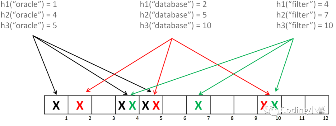 bloomFilter就是一个字节数组,多个hash函数对当前的value进行hash运算,得到一个整数索引值,然后把这个索引位置上设置为1,就完成了add