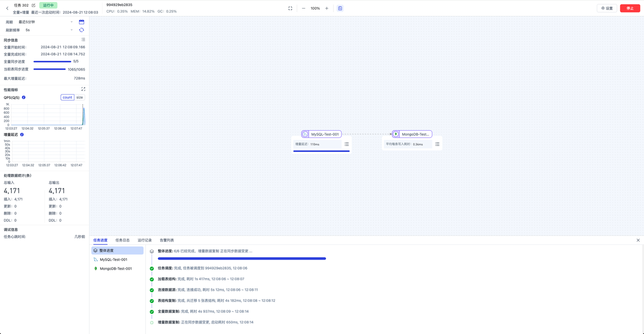 以上,便是借助 TapData 快速实现数据库 MySQL 到 MongoDB 的全、增量同步的模拟教程。